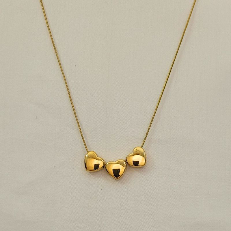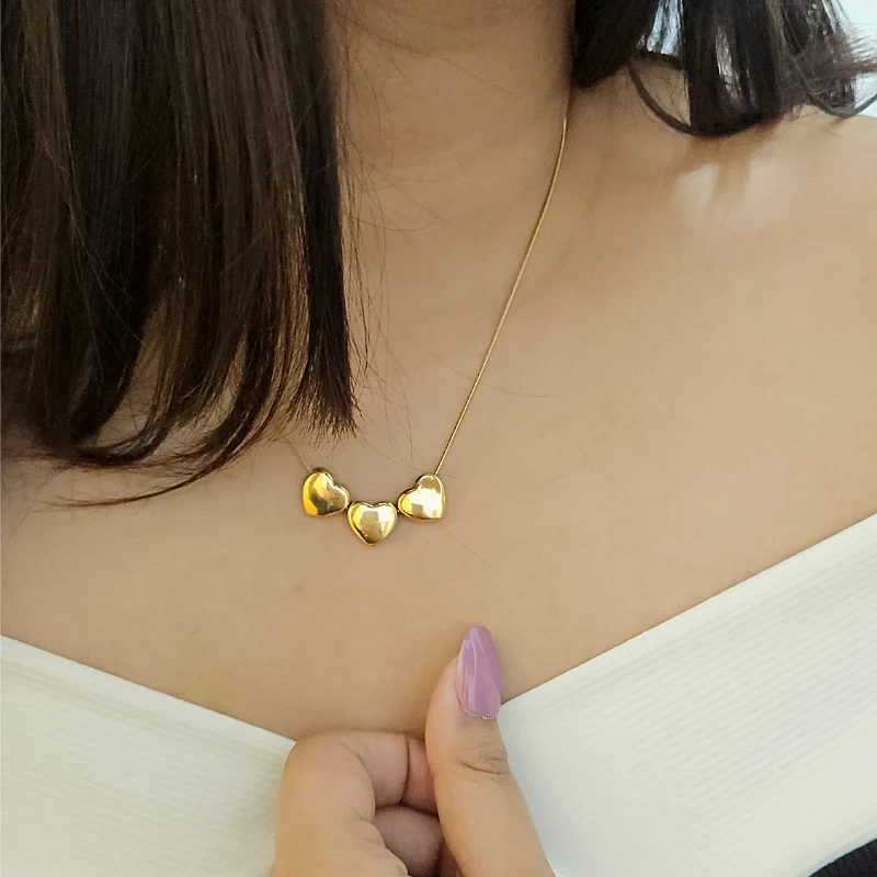 Tiny Tri Hearts Gold Necklace