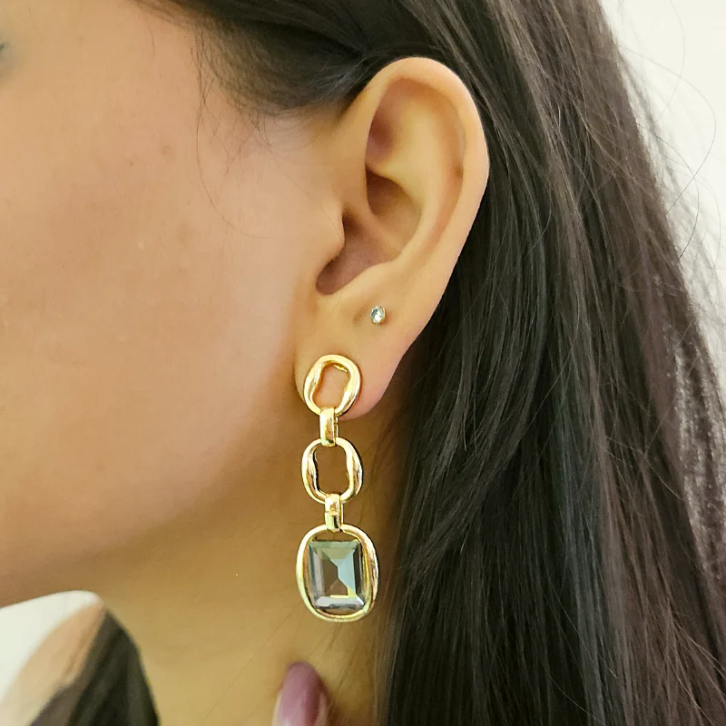 Gold Black Hanging Crystal Earrings